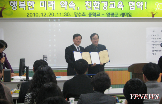 초·중학교 통합 학교인 양수 초·중학교(교장 민광일)와 대표적인 물과 꽃의 정원인 세미원이 지난 20일 본교 다목적실에서 ‘행복한 미래와 친환경교육’을 주제로 한 협약식을 맺었다.