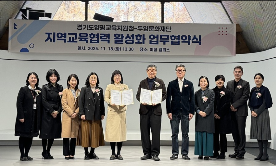 경기도양평교육지원청(교육장 여미경)은 11월 18일(화) 이함캠퍼스에서 두양문화재단(이사장 오황택)와 지역교육협력 활성화를 위한 업무협약을 체결했다.